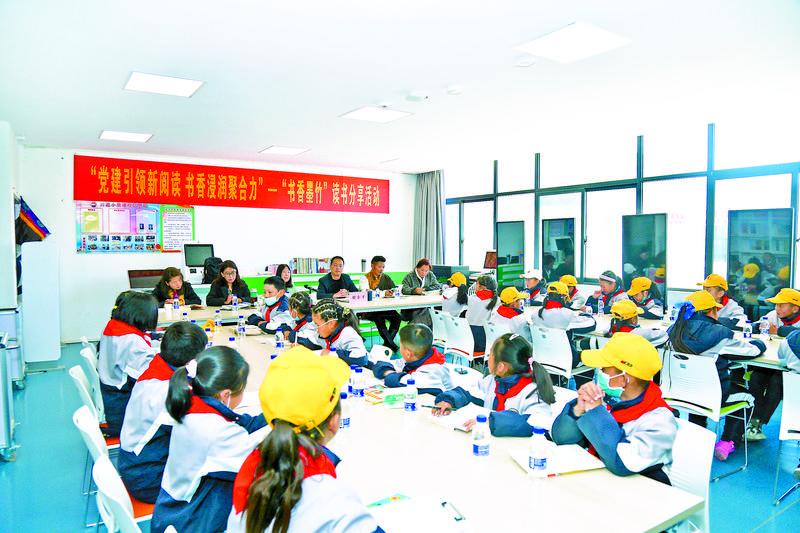 圖為拉薩市墨竹工卡縣委宣傳部在該縣南京實驗小學(xué)舉辦“黨建引領(lǐng)新閱讀 書香浸潤聚合力”——“書香墨竹”讀書分享活動。記者 格桑倫珠 攝