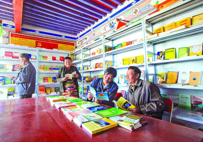 圖為山南市浪卡子縣卡熱鄉(xiāng)群眾在農(nóng)家書屋閱讀書籍。記者 格桑吉美 攝