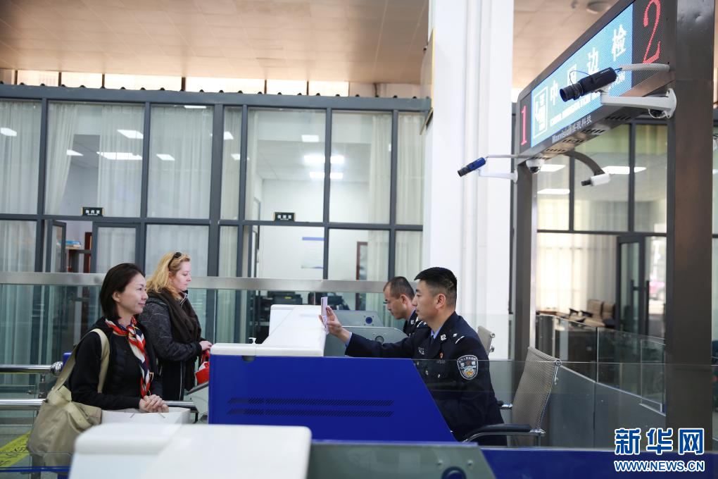 吉隆出入境邊防檢查站民警正在驗放出境旅客(5月1日攝)。肖富貴 攝