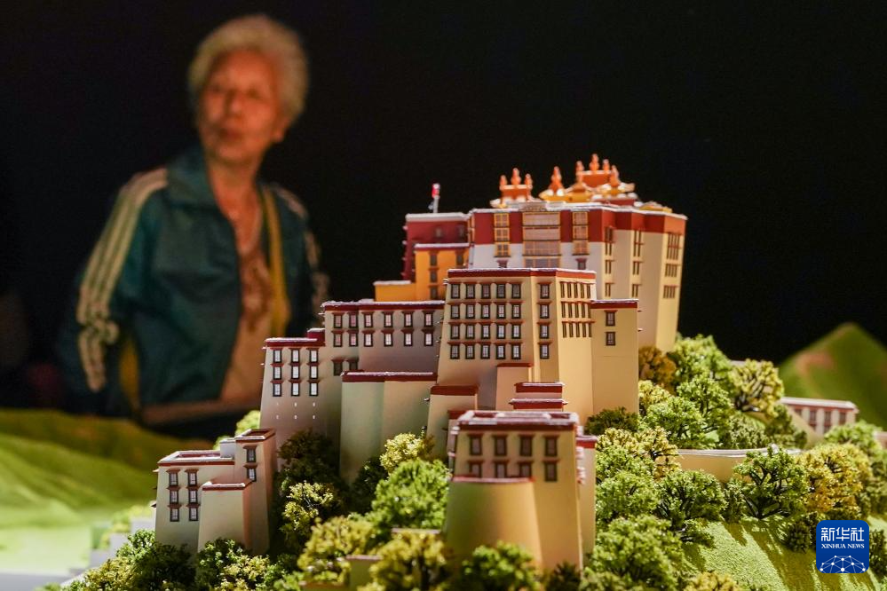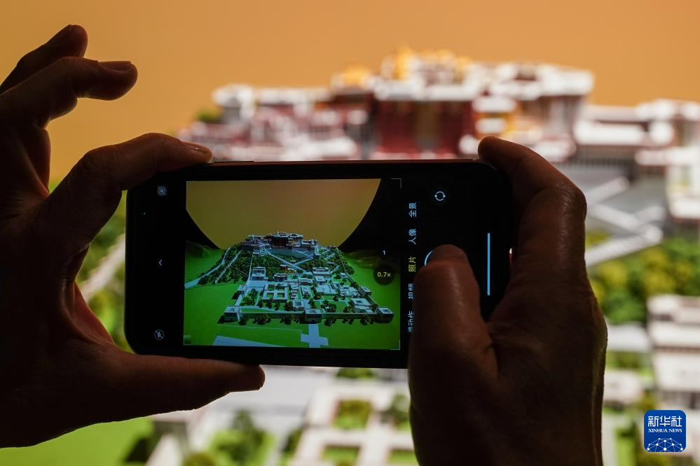 5月11日,觀眾在展出現(xiàn)場參觀拍攝布達(dá)拉宮模型。新華社記者 李博 攝