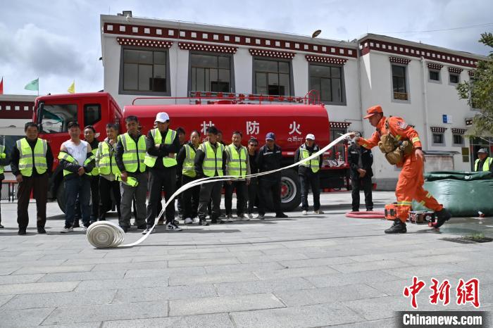 圖為護(hù)林員體驗(yàn)滅火裝備。西繞拉翁 攝