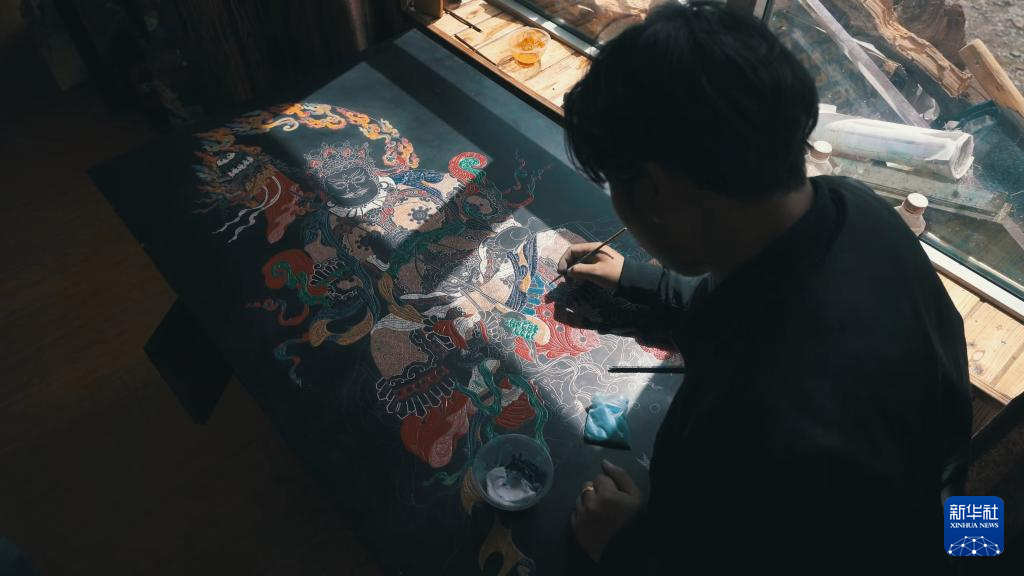 仁青郎加正在創(chuàng)作中。新華社發(fā)