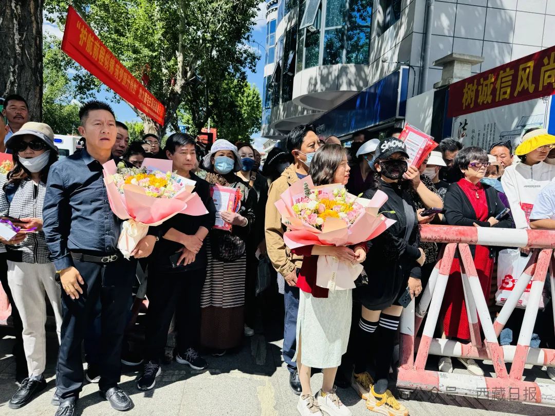圖為拉薩中學(xué)考點(diǎn),正在等候考生的家長(zhǎng)。記者 德吉央宗 攝