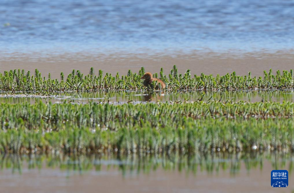 這是6月9日在西藏那曲市申扎縣一處濕地拍攝的黑頸鶴雛鳥(niǎo)。新華社記者 姜帆 攝