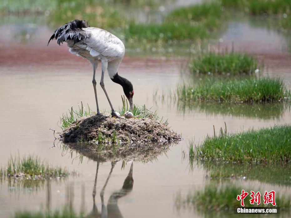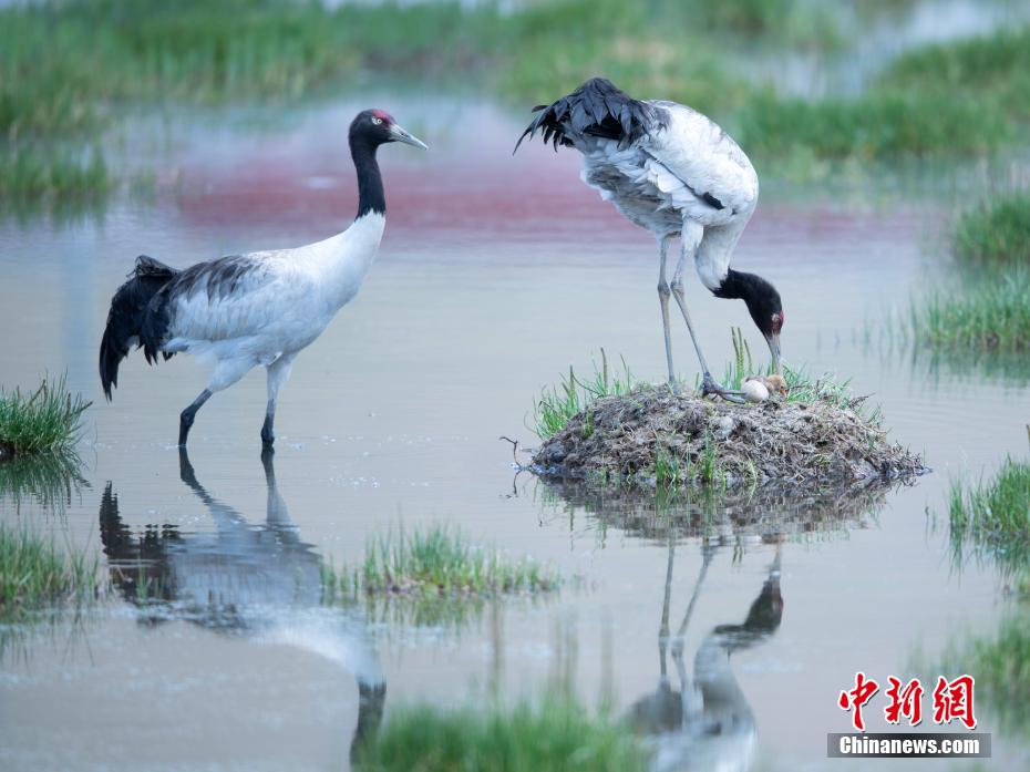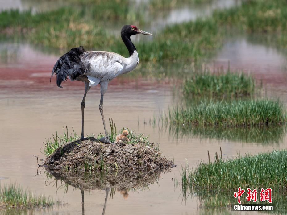 6月16日,在海拔4700米的西藏那曲市申扎縣,經(jīng)過34天的漫長孵化期,一對黑頸鶴夫婦終于等來了自己的小黑頸鶴成功破殼出生。值得一提的是,黑頸鶴寶寶的誕生日也是2024年的父親節(jié),黑頸鶴父親在節(jié)日當(dāng)天喜獲最珍貴的禮物。據(jù)悉,黑頸鶴每窩通常產(chǎn)卵1-2枚,孵化期通常要33到35天。中新社記者 貢嘎來松 攝
