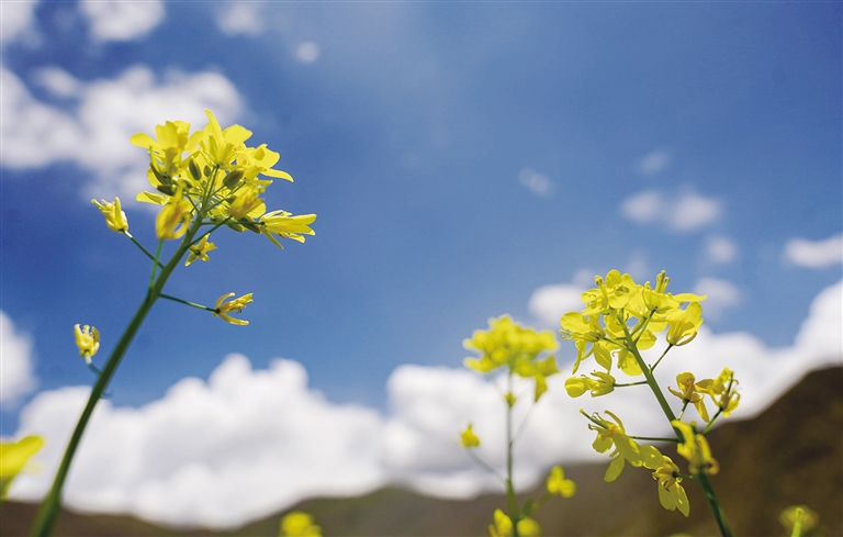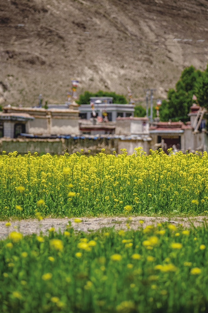 西藏的春天可以欣賞桃花,夏天可以欣賞什么花?那當然是油菜花。近期,西藏各地迎來了油菜花盛開的季節(jié)。行走在夏日的農(nóng)田里,金黃色的油菜花給綠意盎然的農(nóng)田增添了幾分色彩。放眼望去,在藍天白云的映襯下,油菜花海如同金黃色的毯子般鋪展開來,花海在微風中輕聲搖曳,與一旁的道路、錯落有致的村居共同構(gòu)成了一幅和諧美麗的田園風景圖。