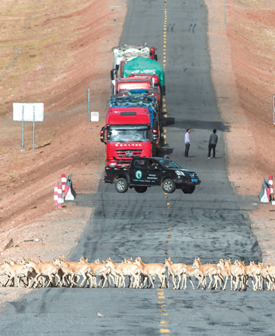 在藏羚羊繁衍遷徙季,青藏公路上將采取臨時交通管制、禁止鳴笛、巡護(hù)救助等措施,讓遷徙的藏羚羊群安全通過。