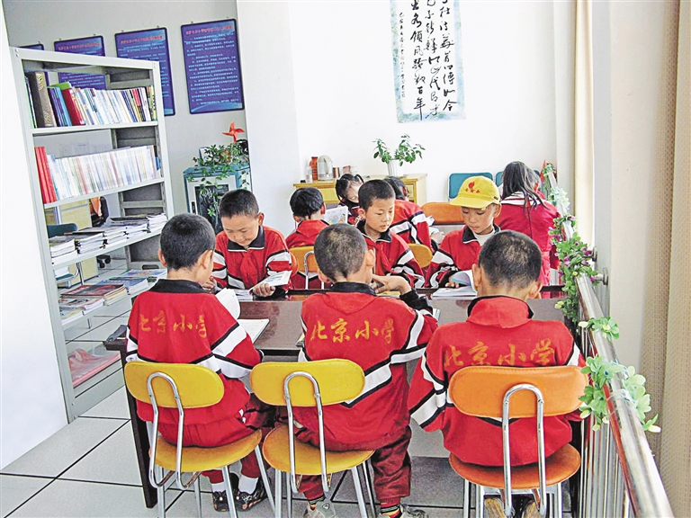 拉薩北京小學的學生在閱覽室看書。