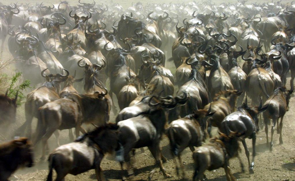 在千里之外的非洲,每年7月至9月,為了追逐水源和青草,數(shù)百萬頭角馬、斑馬和羚羊等食草動物組成一支浩浩蕩蕩的遷徙大軍,從坦桑尼亞塞倫蓋蒂國家公園向肯尼亞馬賽馬拉國家保護區(qū)遷徙,這就是東非野生動物大遷徙。當(dāng)數(shù)百萬頭野生動物從面積廣闊達(dá)數(shù)萬平方公里的塞倫蓋蒂,遷徙到僅有不到2000平方公里的馬賽馬拉的時候,遷徙達(dá)到高潮。
