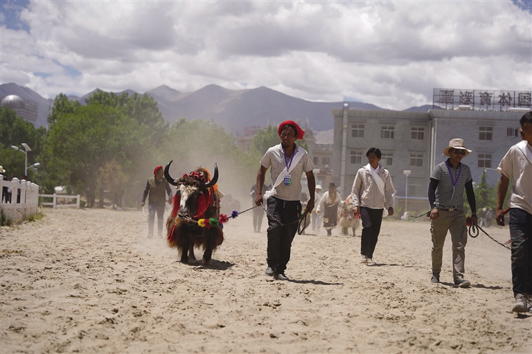 除了比賽本身,最引人注目的當(dāng)屬主人對(duì)每一頭牦牛的精心裝扮——夸張的裝扮、蓬松的牛毛、光亮的牛角,一下子把賽場(chǎng)的氣氛推向高潮。
