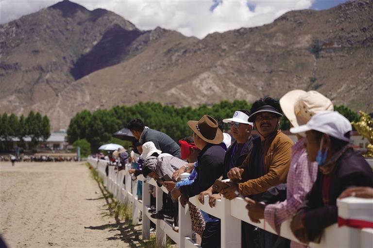 說(shuō)起西藏的民族傳統(tǒng)體育項(xiàng)目,很多人都會(huì)想到“抱石”“賽?!边@類運(yùn)動(dòng)。本屆運(yùn)動(dòng)會(huì)抱石頭比賽在賽馬場(chǎng)舉行,現(xiàn)場(chǎng),選手們沉著冷靜,許多人都是先圍著石頭轉(zhuǎn)一圈,仔細(xì)打量,身體半蹲后再慢慢抱起石頭。抱石頭非常考驗(yàn)選手的力量和忍耐力,現(xiàn)場(chǎng)也有選手因體能消耗過(guò)多,抱起石頭至腹部后放棄比賽。