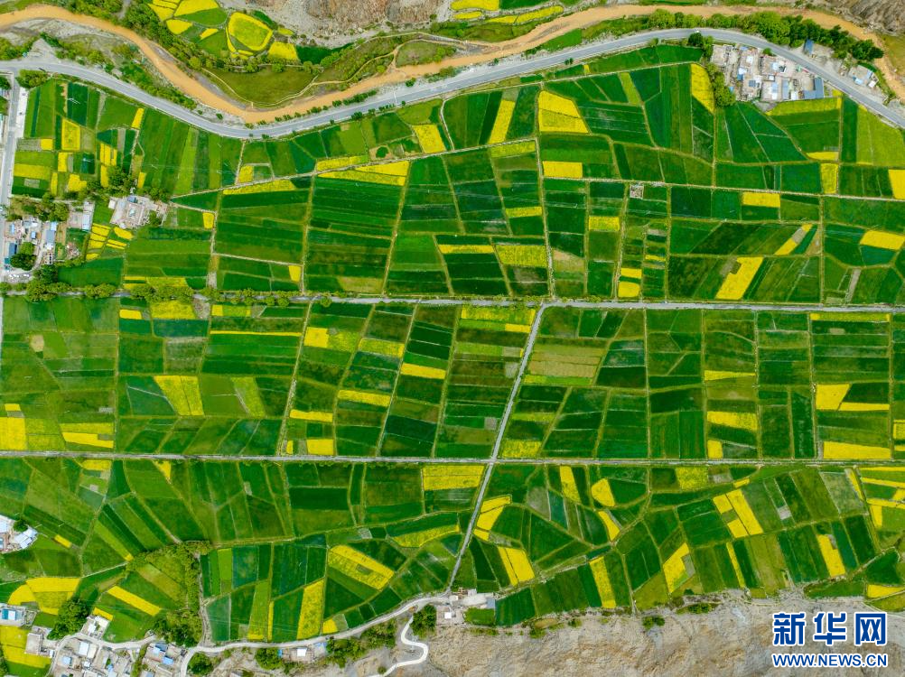 6月23日在西藏山南市乃東區(qū)境內(nèi)拍攝的田園風(fēng)光(無人機照片)。新華網(wǎng) 旦增努布 攝
