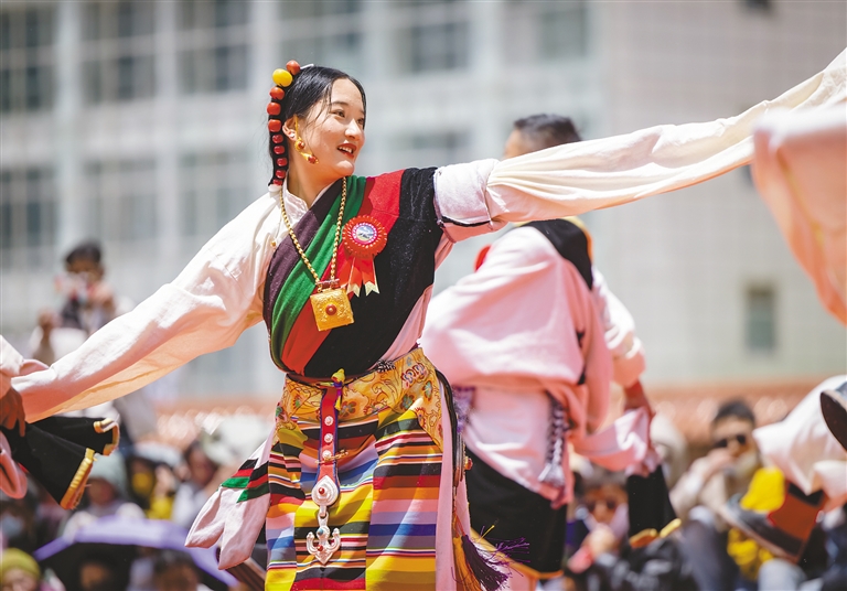 “我現(xiàn)在是縣藝術(shù)團(tuán)的一名演職人員,除了基本工資外,還有排練補助、演出場次補助、伙食補助等,月收入5000元左右。成為演職人員后,除了去杭州、玉樹等地進(jìn)行交流演出外,還參加了那曲市舉辦的各種大型演出活動?!备窦哟逦乃囮犼爢T次旺拉姆自豪地說。
