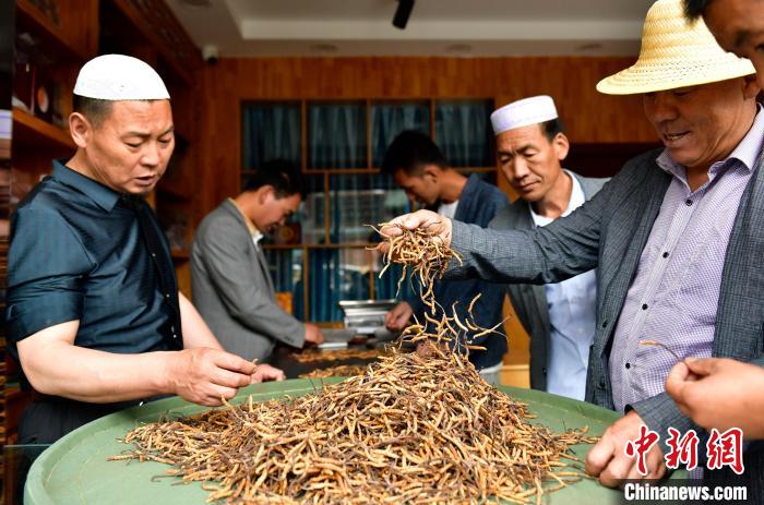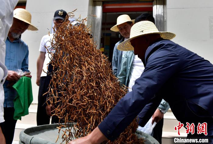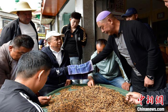 圖為7月16日,蟲草商們在挑選蟲草。中新社記者 李林 攝
