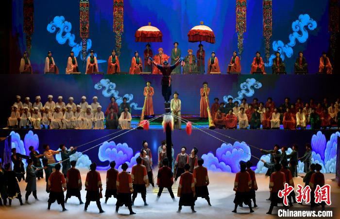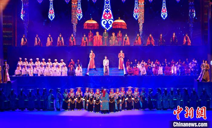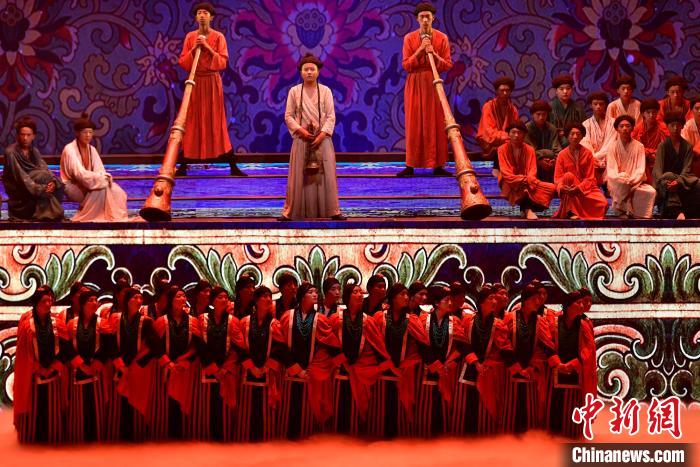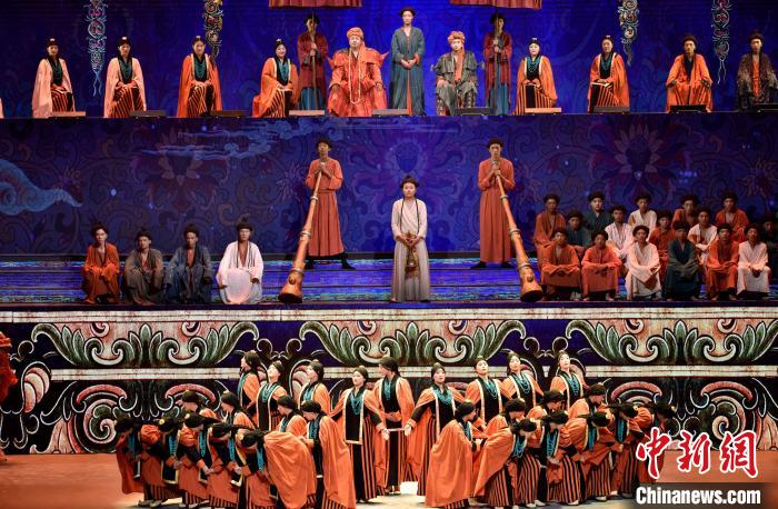 7月19日晚,《緣起象雄·古格遺風(fēng)》情景歌舞詩(shī)劇在西藏拉薩上演。該劇通過(guò)歌、舞、詩(shī)、畫等多種藝術(shù)形式,帶領(lǐng)觀眾身臨其境地感受古象雄文化的獨(dú)特魅力和古格王朝的輝煌與傳奇。圖為《緣起象雄·古格遺風(fēng)》演出現(xiàn)場(chǎng)。中新社記者 李林 攝