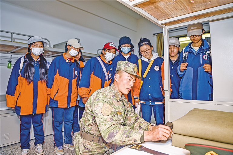 圖為八一建軍節(jié)前夕,西藏日喀則軍分區(qū)聯(lián)合日喀則市委宣傳部開展“強(qiáng)國復(fù)興有我”系列軍旅活動,組織青少年學(xué)生零距離感受軍營風(fēng)采,切實(shí)提高國防意識,激發(fā)愛國主義情懷。這是學(xué)生們參觀官兵宿舍。通訊員 馮千恩 劉煜欽 記者 楊子彥 攝