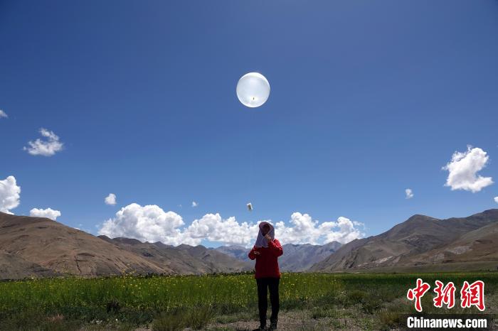 8月1日,作為二次青藏科考一項(xiàng)重要組成部分,珠峰地區(qū)首次開展航空平臺(tái)水-熱-碳通量觀測(cè)試驗(yàn)正式啟動(dòng),圖為科考隊(duì)員施放觀測(cè)氣球。中新網(wǎng)記者 孫自法 攝