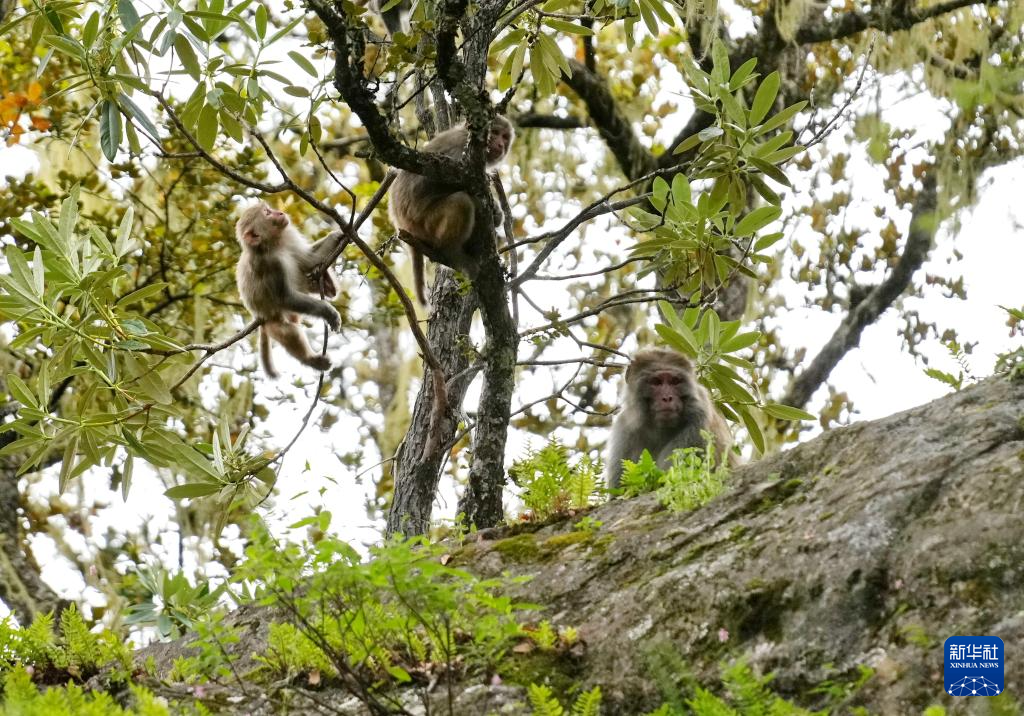 巴松措旅游風景區(qū)里的藏獼猴(8月2日攝)。新華社記者 張汝鋒 攝