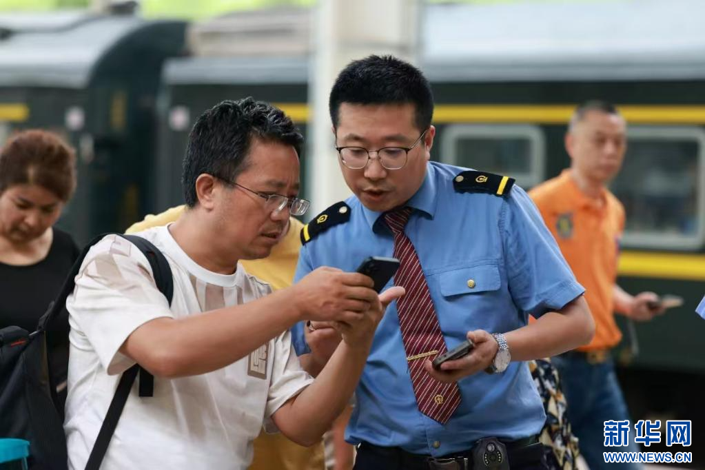 鐵路工作人員正在幫助旅客查看核對(duì)乘車信息。(中國(guó)鐵路青藏集團(tuán)公司供圖)
