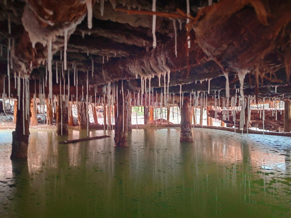 鹽田在瀾滄江兩岸依山而建,由多根木柱搭架,架上用透水性強(qiáng)的泥土鋪成平面夯實(shí)。