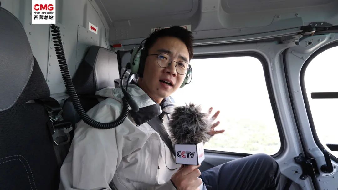 圖為:總臺記者呂小品乘直升機鳥瞰新拉薩