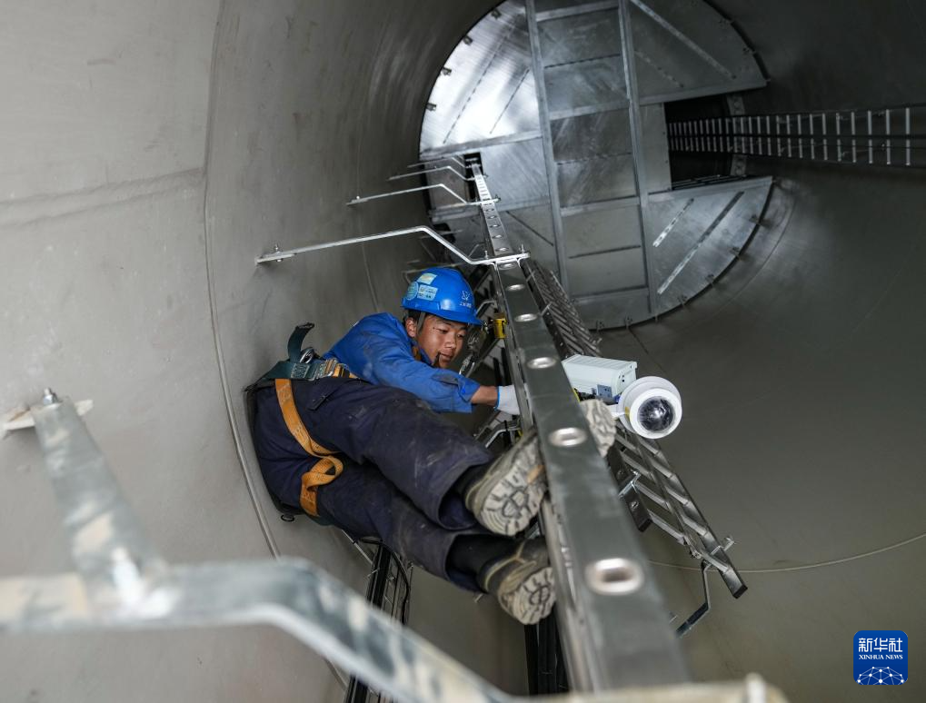 10月17日,工作人員在檢修風(fēng)機(jī)內(nèi)部的監(jiān)控設(shè)備。新華社記者 晉美多吉 攝??