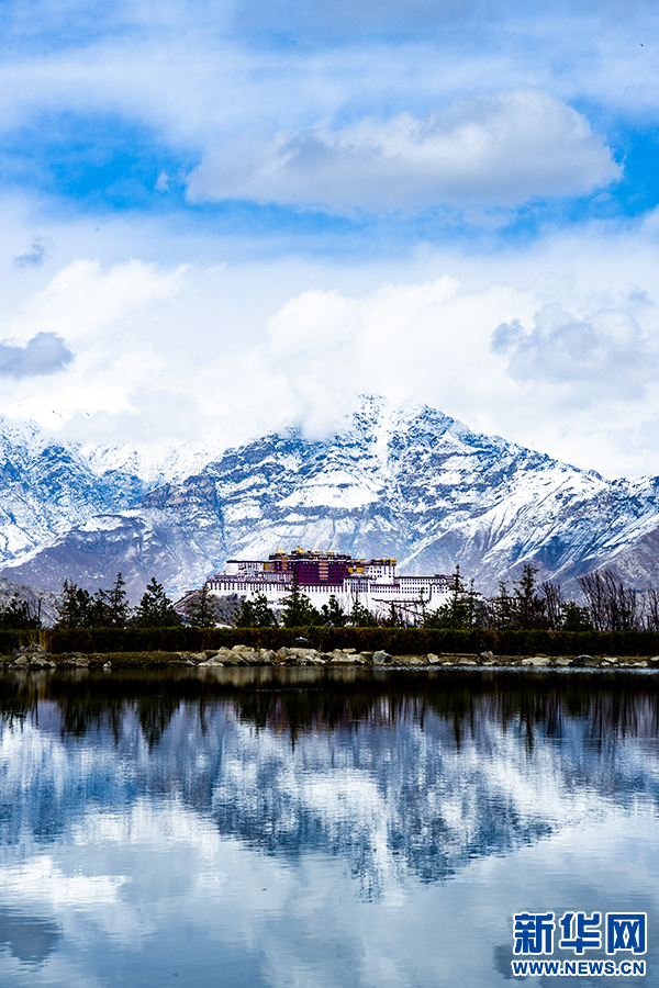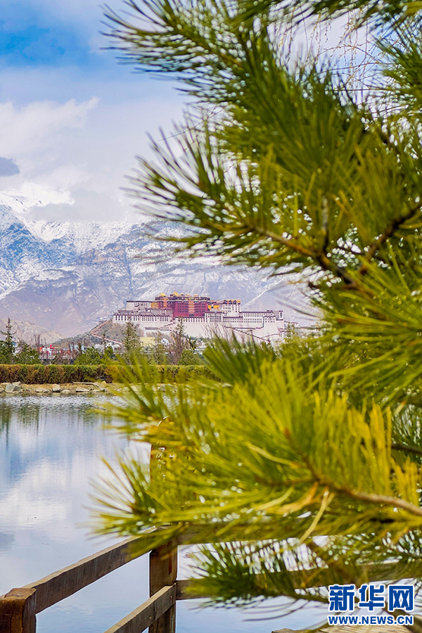 3月30日,在拉薩市南山公園拍攝的雪后布達拉宮。新華網(wǎng) 柑丹鴦琦攝