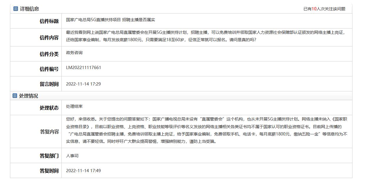 “廣電總局推5G主播扶持計(jì)劃還給事業(yè)編”?官方辟謠