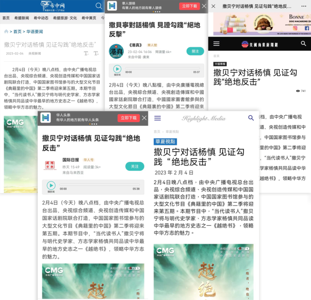 未播先熱!這部當(dāng)代人幾乎聞所未聞的千古“奇書”,一下子吸引了海內(nèi)外網(wǎng)民目光。海內(nèi)外諸多媒體迅速關(guān)注,紛紛報(bào)道。截至目前,歐洲華語(yǔ)廣播電臺(tái)、匈牙利聯(lián)合報(bào)、北歐時(shí)報(bào)等數(shù)十家海外媒體對(duì)第二季內(nèi)容的轉(zhuǎn)發(fā)和報(bào)道,已輻射10多個(gè)國(guó)家和地區(qū),在海外再次掀起“典籍熱”。
