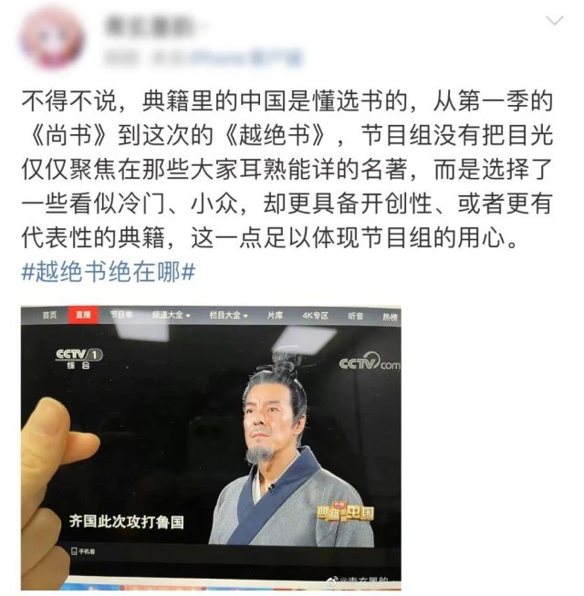 節(jié)目組也強(qiáng)調(diào),希望從“不那么百科全書式的典籍”出發(fā),在節(jié)目中展現(xiàn)一些“小眾”典籍,更重要的是因?yàn)槠湓谒枷肷系摹坝腥菽舜蟆?。例如《越絕書》保存了先秦時(shí)期許多珍貴史料,為研究這一時(shí)代的社會(huì)歷史提供了一個(gè)重要的基點(diǎn),是探索吳越地區(qū)文化及其精神形態(tài)變遷的關(guān)鍵典籍和重要對(duì)象。