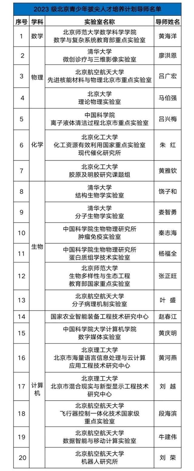 今年2月,北京科學中心發(fā)布了《關于開展2023級北京青少年拔尖人才培養(yǎng)計劃招生的通知》,凡是對數(shù)學、物理、化學、生物、計算機其中一門具有濃厚興趣的北京市全日制公立中學初二至高一年級學生均可報名申請。