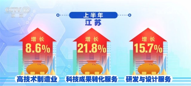 江蘇、浙江、安徽把創(chuàng)新當做制造業(yè)升級的著力點。上半年,江蘇高技術(shù)制造業(yè)增長8.6%,科技成果轉(zhuǎn)化服務(wù)、研發(fā)與設(shè)計服務(wù)分別增長21.8%和15.7%。浙江上半年,科學(xué)研究和技術(shù)服務(wù)業(yè)投資增長52.2%。規(guī)模以上工業(yè)中,新產(chǎn)品產(chǎn)值率已經(jīng)達到41.4%,并在持續(xù)提高。安徽上半年裝備制造業(yè)增加值增長了15.3%,汽車產(chǎn)業(yè)增長42.6%,光伏產(chǎn)業(yè)增長了一倍。