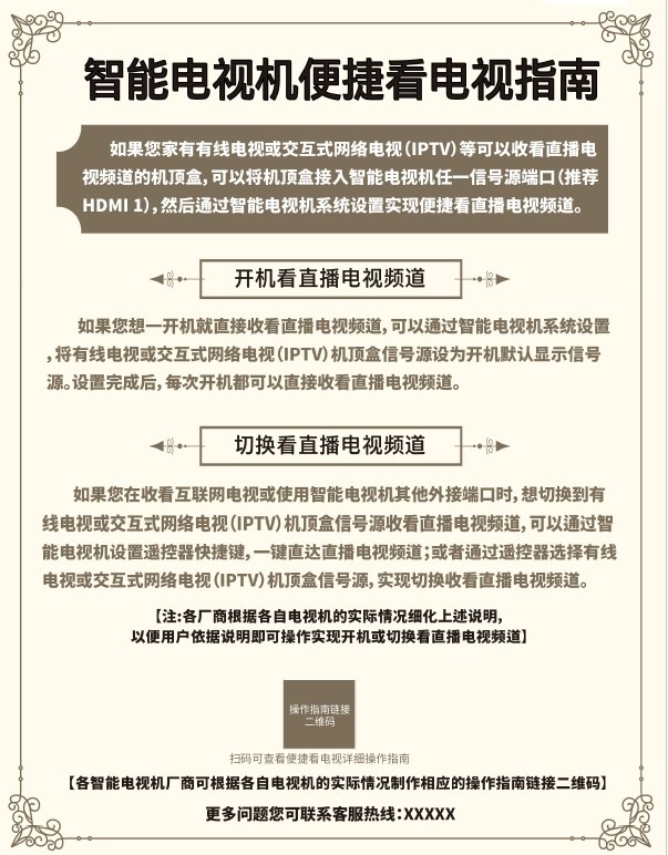 記者11月10日從國家廣播電視總局獲悉,根據(jù)治理電視“套娃”收費和操作復(fù)雜工作部署要求,國家廣播電視總局、工業(yè)和信息化部、國家市場監(jiān)督管理總局、中國消費者協(xié)會決定開展電視收看“明白卡”提示工作。自2023年11月起,各電視機(jī)生產(chǎn)廠商要將制作完成的《電視收看“明白卡”》裝入電視機(jī)包裝箱內(nèi)的說明材料中,同時在電商銷售頁面、線下實體銷售和廠商入戶安裝電視機(jī)過程中,將“明白卡”內(nèi)容向用戶明確展示,并告知用戶只有開通有線電視或IPTV方可收看電視直播頻道節(jié)目。(記者王鵬)