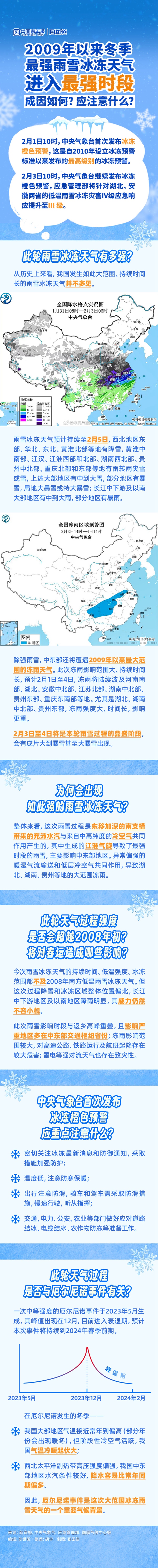 今冬此刻南方多省雨雪紛紛,氣溫驟降。2月3日,中央氣象臺繼續(xù)發(fā)布冰凍橙色預(yù)警,應(yīng)急管理部將11省份的低溫雨雪冰凍災(zāi)害應(yīng)急響應(yīng)提升至IV級及以上。說好的暖冬為何這么冷?強度是否會超越2008年初?有哪些需要注意的方面?
