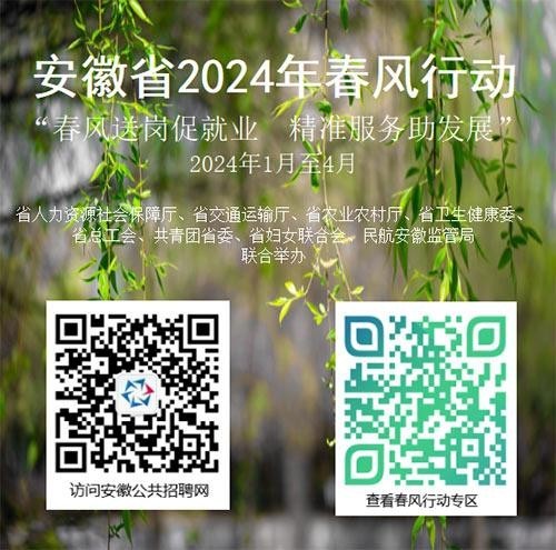 2024年春風(fēng)行動(dòng)正在各地火熱開(kāi)展。今天,人力資源社會(huì)保障部公布各地春風(fēng)行動(dòng)活動(dòng)專區(qū)、招聘服務(wù)平臺(tái)以及微信小程序,發(fā)布現(xiàn)場(chǎng)招聘會(huì)、網(wǎng)上招聘會(huì)、直播帶崗等活動(dòng)安排以及企業(yè)用工需求,將崗位送到勞動(dòng)者身邊。大家可通過(guò)掃描下方二維碼、點(diǎn)擊網(wǎng)站鏈接、進(jìn)入微信小程序查看。
