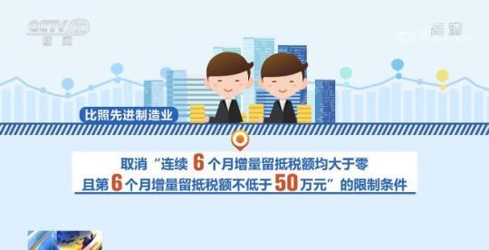 在擴(kuò)大范圍、提高比例以及加快頻次上,與前期政策相比,實(shí)施力度均有所加大。對(duì)小微企業(yè)和制造業(yè)等六個(gè)行業(yè),不僅允許其退還增量留抵稅額,而且允許其退還存量留抵稅額。將小微企業(yè)和制造業(yè)等六個(gè)行業(yè)增量留抵稅額退還比例由60%提高到100%,和先進(jìn)制造業(yè)保持一致。另外,對(duì)所有小微企業(yè)和制造業(yè)等六個(gè)行業(yè)納稅人均按月退還增量留抵稅額,比照先進(jìn)制造業(yè),取消“連續(xù)6個(gè)月增量留抵稅額均大于零,且第6個(gè)月增量留抵稅額不低于50萬(wàn)元”的限制條件。