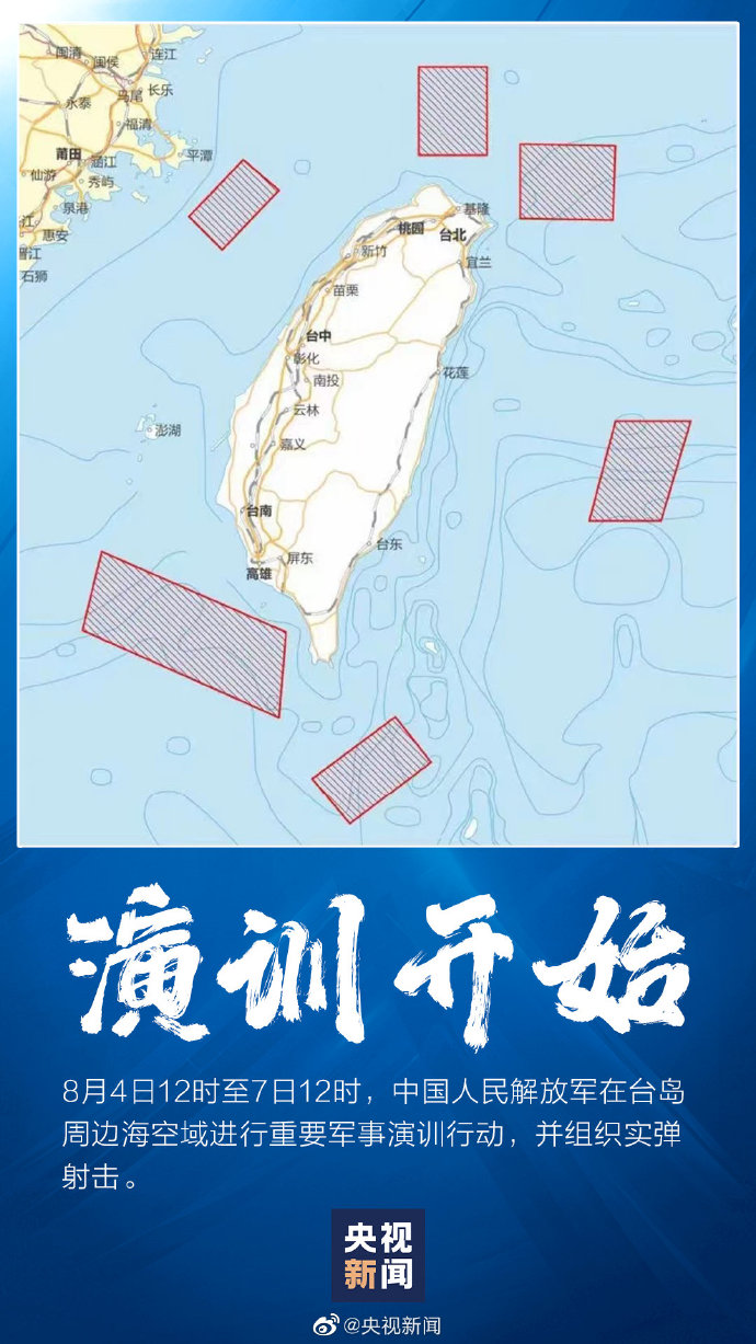 今日12時(shí)至7日12時(shí),解放軍重要軍事演訓(xùn)行動(dòng)進(jìn)行,并組織實(shí)彈射擊。此次實(shí)戰(zhàn)演訓(xùn)選擇環(huán)島六大區(qū)域,在此期間,有關(guān)船只和飛行器不要進(jìn)入有關(guān)海域和空域!