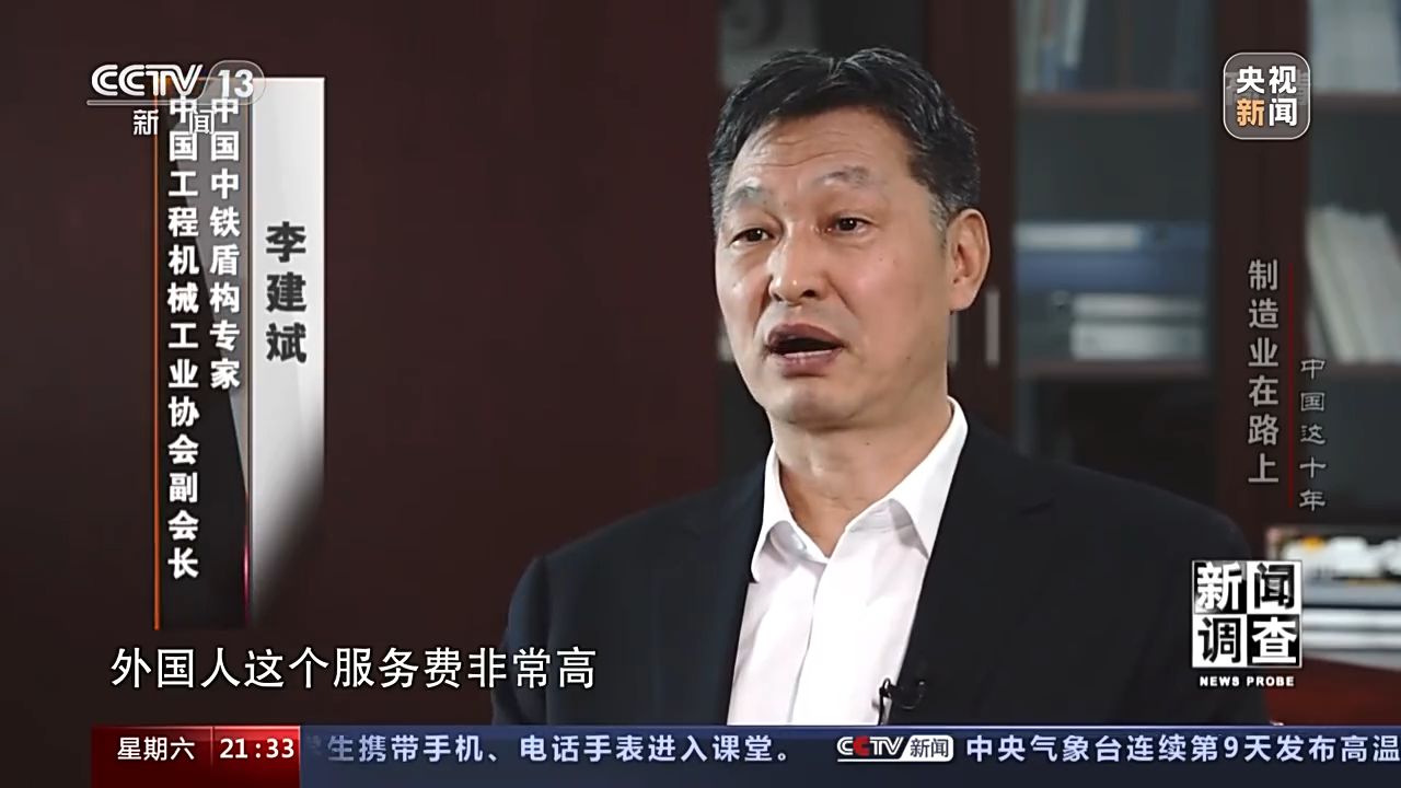 中國工程機(jī)械工業(yè)協(xié)會副會長 中國中鐵盾構(gòu)專家 李建斌:兩臺將近七個億,外國人這個服務(wù)費(fèi)非常高,服務(wù)的時間非常短,每天就是八小時,過了人家不上班,我們是三班制,他是一班制,機(jī)器壞了我們就要等,這個是對我們刺激非常大,你不掌握技術(shù),所以說你處處受制于人。