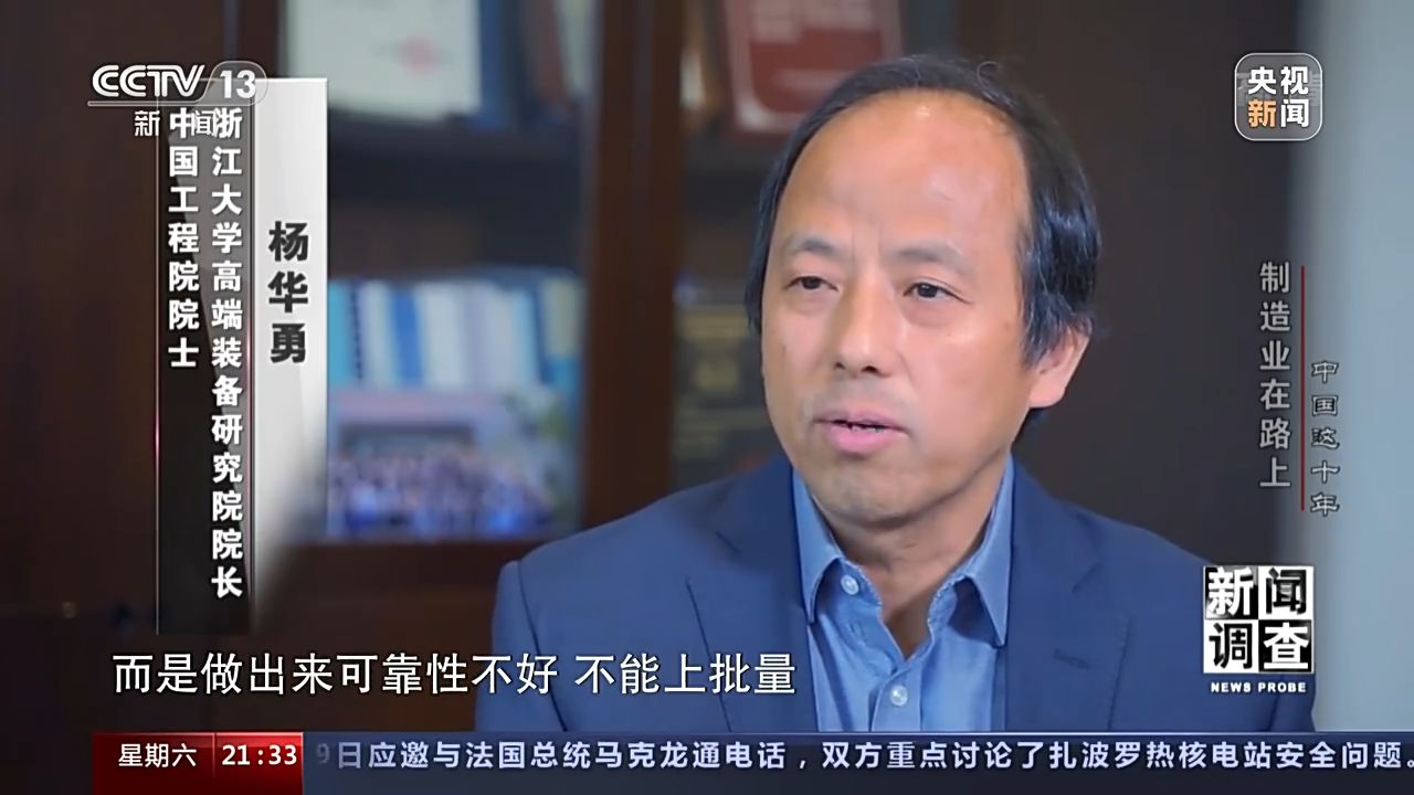 中國工程院院士 浙江大學(xué)高端裝備研究院院長 楊華勇:2002、2003年的時候,說一年需要三十臺,我們就覺得三十臺,那都是最大膽的論證,沒想到后來跟高鐵上來,然后鐵路,西氣東輸,南水北調(diào),都要。