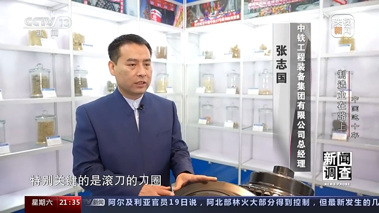 中鐵工程裝備集團(tuán)有限公司總經(jīng)理 張志國:我們在研究這個刀圈的時候和清華大學(xué)等大的院校,專業(yè)的院校進(jìn)行合作,經(jīng)過我們實驗以后我們2018年實現(xiàn)了國產(chǎn)化,目前整個中國市場上的刀具國產(chǎn)的刀具占到了90%。