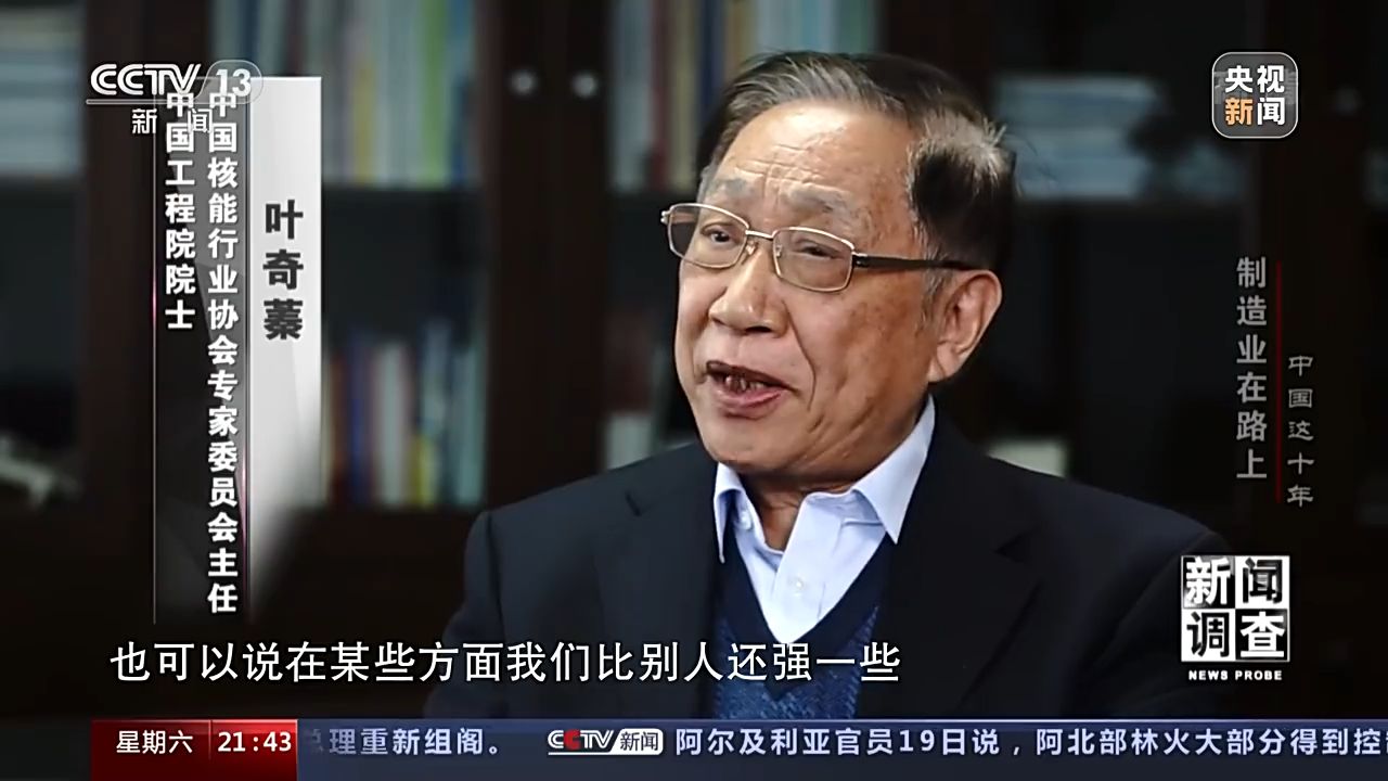 中國工程院院士 中國核能行業(yè)協(xié)會專家委員會主任 葉奇蓁:從總的技術(shù)水平可以這樣說,我們已經(jīng)從跟跑進(jìn)入了并跑,也可以說在某些方面我們比別人還強(qiáng)一些。