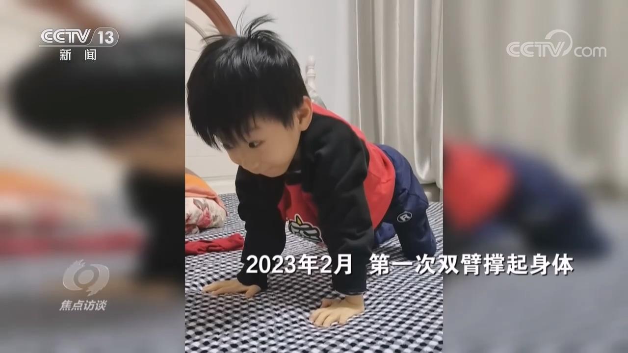 小石頭的爸爸馬恒祥:“6個月之前發(fā)育都很正常,像抬頭、翻身、坐都沒有問題,但是在8個月左右的時候,發(fā)現(xiàn)他的腿在躺著的時候不會動了,坐也坐不住了?!?/p>