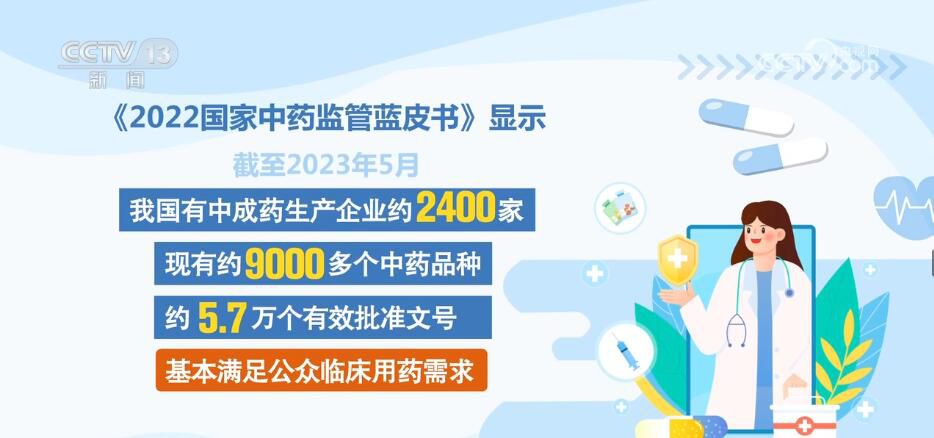 《2022國(guó)家中藥監(jiān)管藍(lán)皮書》顯示,截至2023年5月,我國(guó)有中成藥生產(chǎn)企業(yè)約2400家,現(xiàn)有約9000多個(gè)中藥品種,約5.7萬個(gè)有效批準(zhǔn)文號(hào),基本滿足公眾臨床用藥需求。