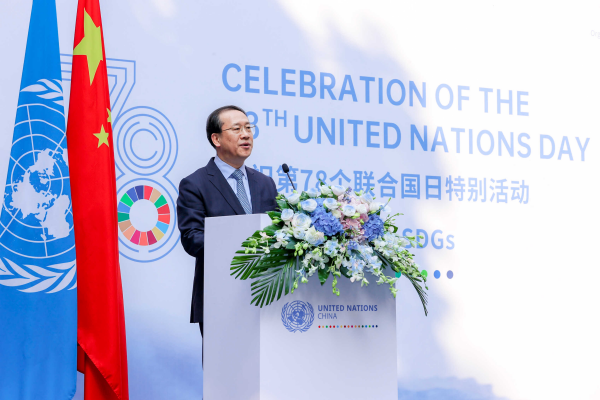 2023年10月23日,外交部副部長(zhǎng)馬朝旭出席聯(lián)合國(guó)發(fā)展系統(tǒng)駐華協(xié)調(diào)員舉辦的“聯(lián)合國(guó)日”慶?;顒?dòng)并發(fā)表致辭。
