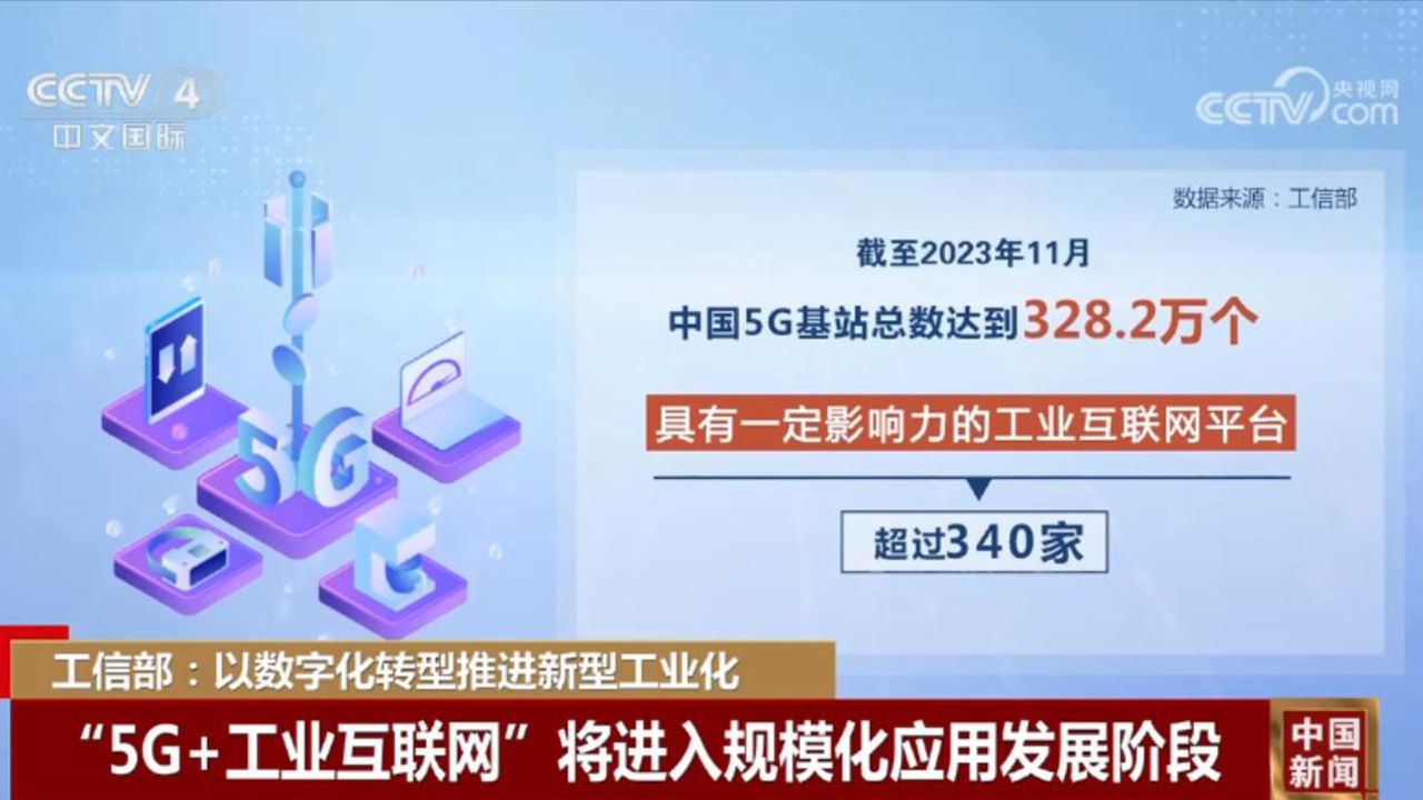 數(shù)據(jù)顯示,截至2023年11月,我國5G基站總數(shù)達(dá)328.2萬個,具有一定影響力的工業(yè)互聯(lián)網(wǎng)平臺超340家。