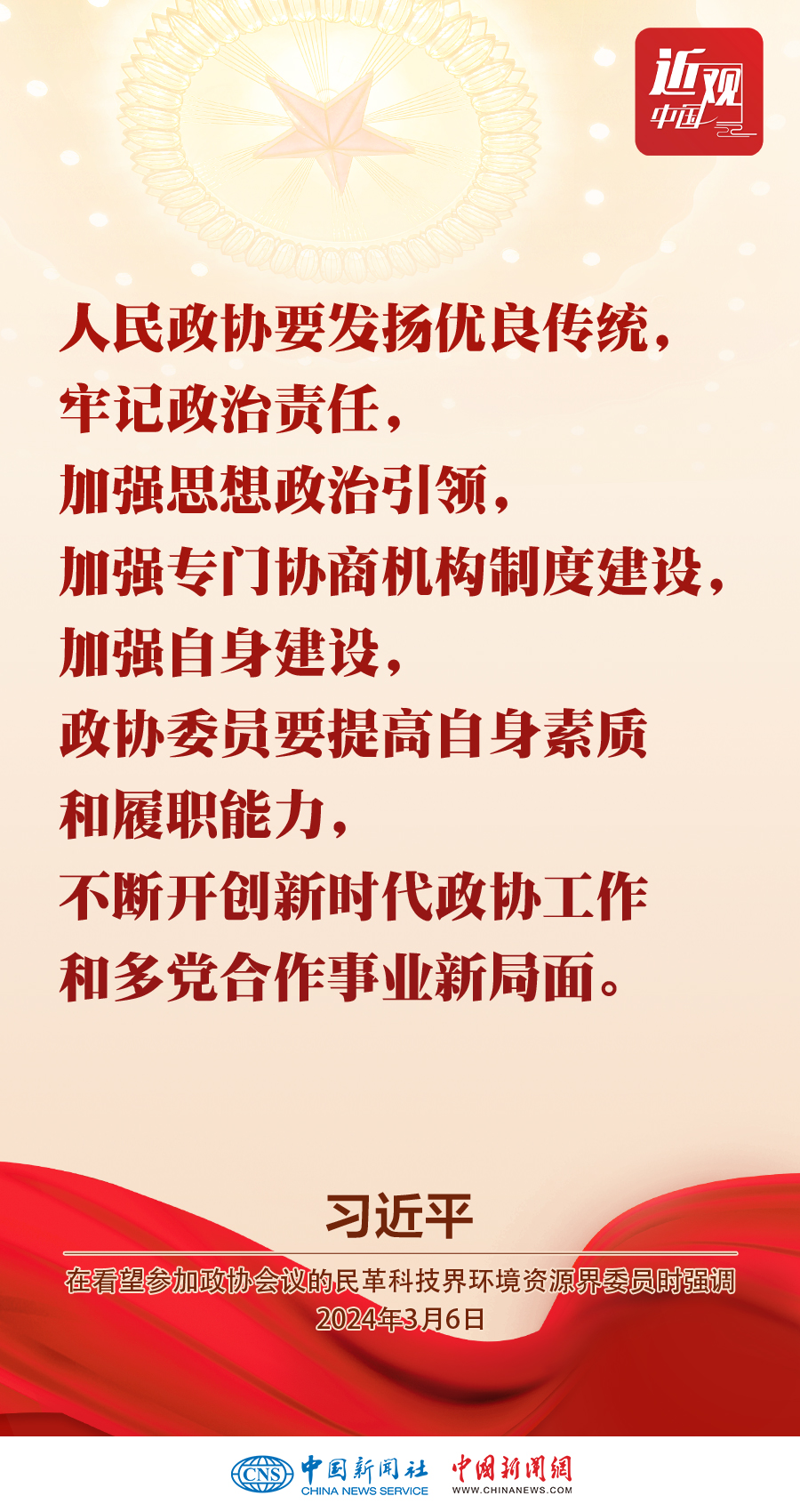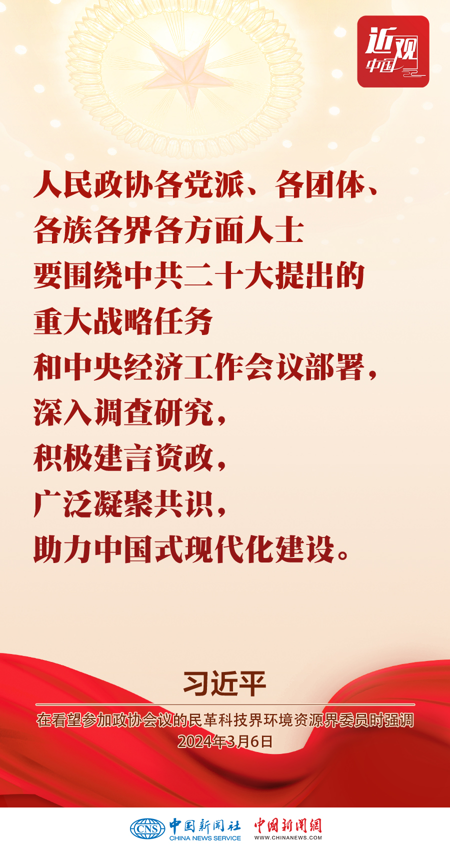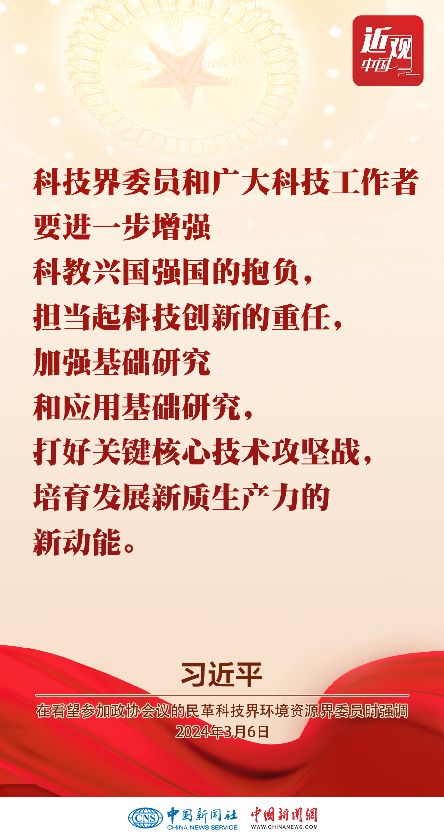 3月6日,中共中央總書記、國家主席、中央軍委主席習(xí)近平看望參加全國政協(xié)十四屆二次會議的民革、科技界、環(huán)境資源界委員,并參加聯(lián)組會,聽取意見和建議。他強調(diào)——