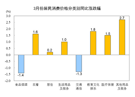 國(guó)家統(tǒng)計(jì)局:3月份居民消費(fèi)價(jià)格同比上漲0.1%
