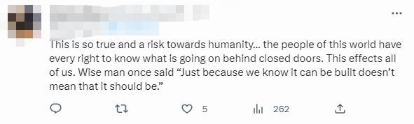在網(wǎng)絡(luò)上,這封信也引起熱烈討論,有網(wǎng)友表示認(rèn)同,人們需要知道發(fā)生了什么,“僅僅因為我們知道可以建造它,并不意味著應(yīng)該建造”。