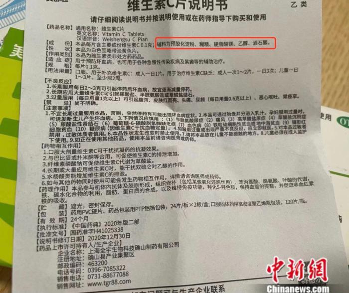 圖為藥品維生素C片說(shuō)明書(shū)。 韋香惠 攝