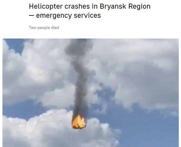 據(jù)報道,消息人士稱,“根據(jù)初步數(shù)據(jù),一架直升機在克林茨市墜毀,原因是發(fā)動機起火。”